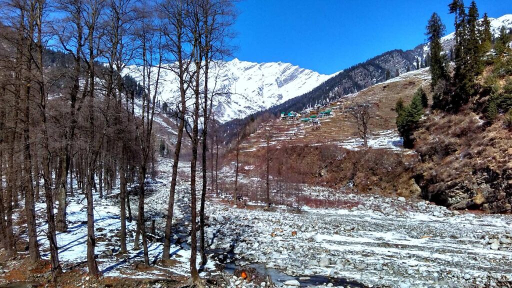What kind of snow: Often older snow cover mixed with fresh patches if recent snowfall has happened. The Sissu waterfall area can look stunning with snow.